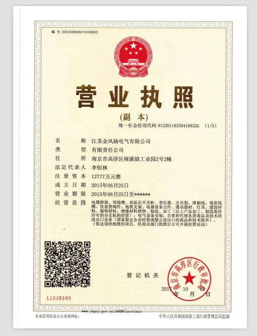 江蘇金風揚電氣有限公司位于風景秀麗的江南古城鎮江東郊的揚子江畔,被國家命名為中國工程電器國家級電力電器產業基地的揚中市,常泰高速由泰州長江大橋將京滬高速和滬寧高速在揚中連貫,西靠南京機場,北近江都機場,南接常州機場和上海虹橋機場,交通十分便利。 本公司主要以生產輸配電為主的高低壓開關柜、配電箱、絕緣封閉母線槽、管形母線、鋼制電纜橋架、防火阻燃橋架、不銹鋼、鋁合金、玻璃鋼橋架、網格式電纜橋架等產品。現擁有國內外的生產和檢測設備。在華東建筑設計院等專家學者的幫助指導下,引進和吸納國內外的新技術、新成果、實現了建筑、能源和基礎設備領域的電氣化、智能化的新格局。產品銷往全國28個省市和地區,已為全國2000多項著名工程提供了配套服務。產品廣泛用于電廠、冶金、化工、建材、電子、水處理、工礦、機場、學校、房地產、市政工程等行業。 公司始終堅持“技術創新、質量可靠、堅守承諾、顧客滿意”的質量方針與您...